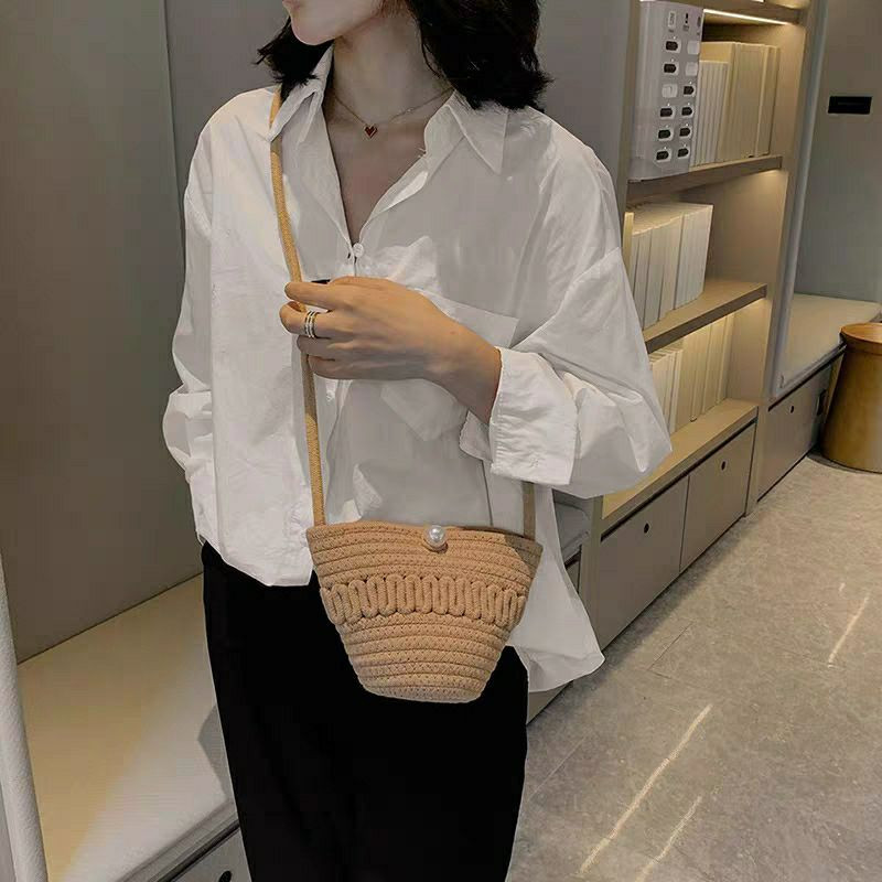 Sac à bandoulière tissé simple en paille douce pour femme, sac en fil de coton perlé, besace décontracté pour la plage