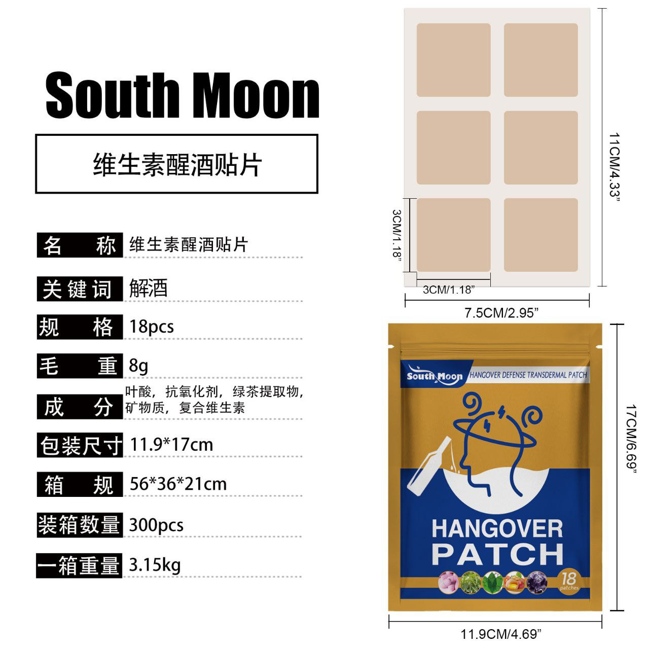 South Moon Vitamin Sober Patch pour soulager l'inconfort après avoir bu, patch contre la gueule de bois 18in pack