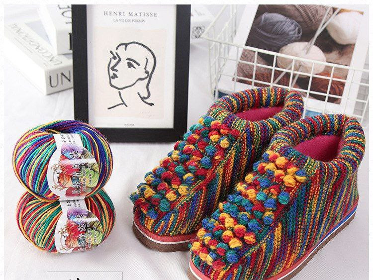 Fil fantaisie teint en acrylique, 4 brins d'épaisseur moyenne, chaussures au crochet tricotées à la main, pull dégradé, fil de coton au lait,