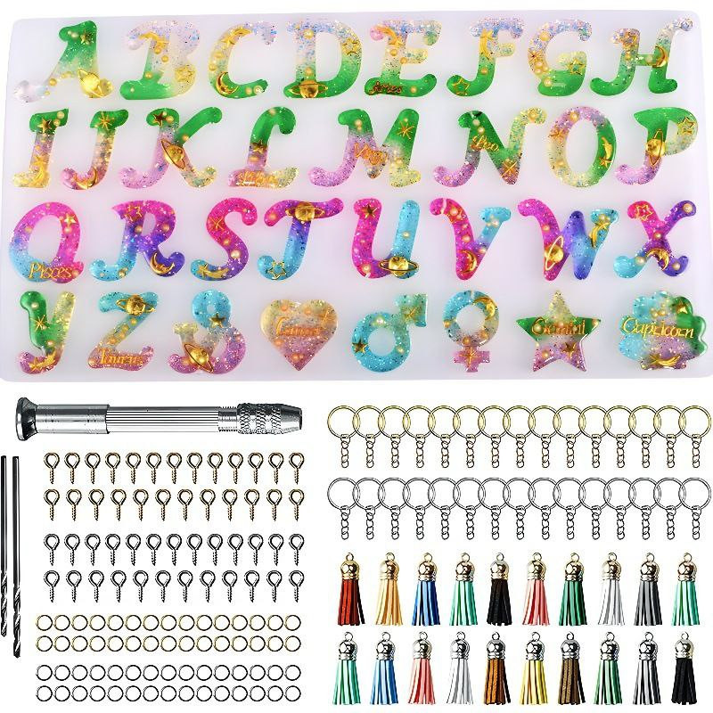 Moule en résine époxy cristal bricolage, pendentif 26 lettres anglaises, porte-clés, moule en Silicone