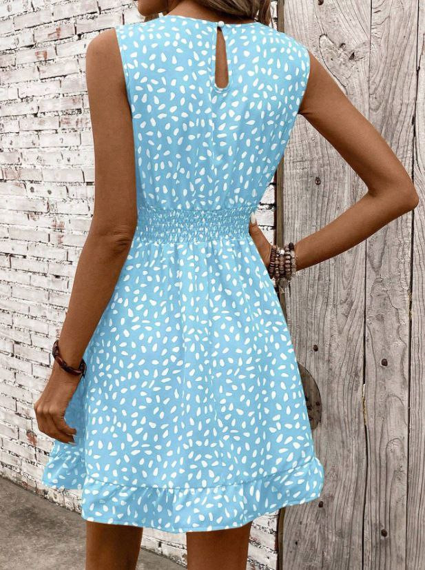 Nouvelle robe imprimée à la mode à col rond et sans manches pour femmes européennes et américaines