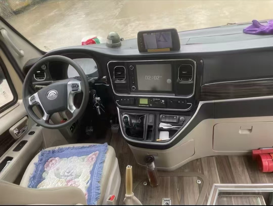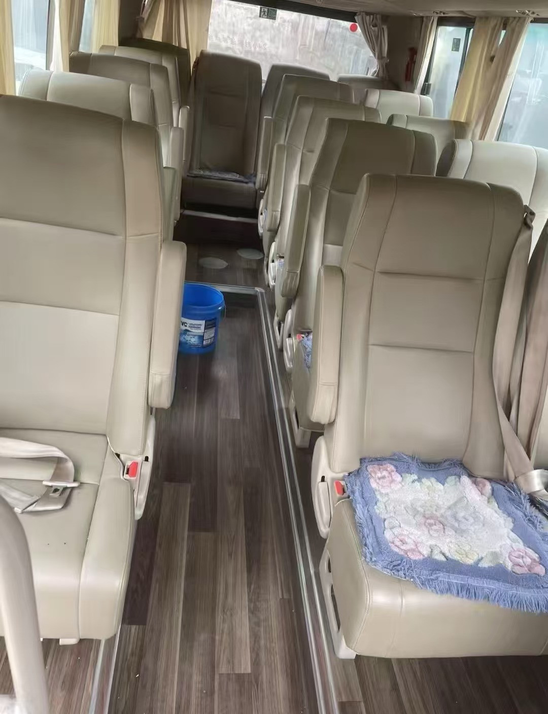[Configuration du véhicule] Climatisation, 18 places, petit et haut niveau, double vitesse relevable ! Moteur diesel Shanghai 150 CV, boîte de vitesses rapide à 6 rapports, porte avant, revêtement de siège en cuir, plancher en cuir grainé de bois, cabine traversante, caméra de recul couleur, sièges avant et arrière réglables avec port de chargement USB
