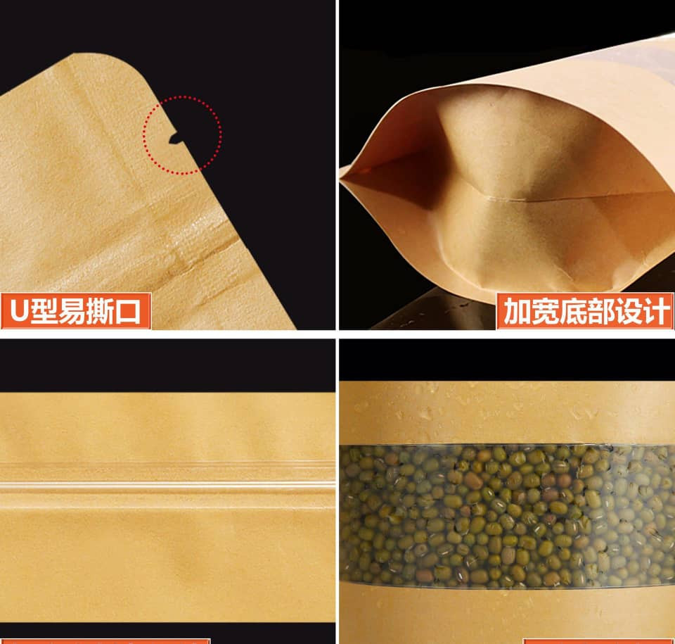 Fenêtre ouverte Sac en papier kraft fabricant en gros de sacs auto-exceptionnels Sac d'emballage alimentaire de nourriture séchée sac auto-sécurisé