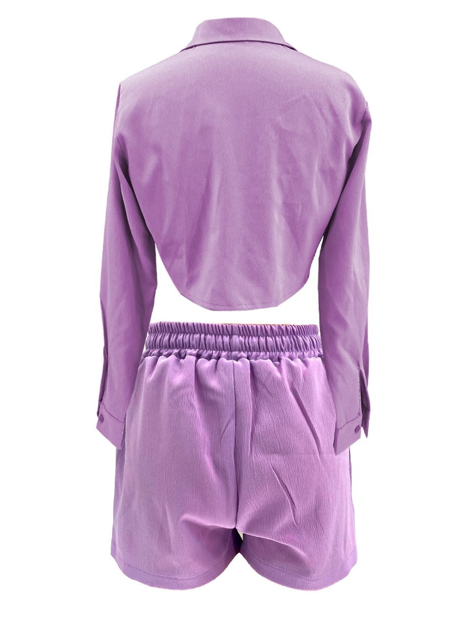 Ensemble de 2 pièces tendance, class, sexy décontracté de haut manche longue et short culotte court de la mode féminine, couleurs solides à manches longues, avec col et cordon