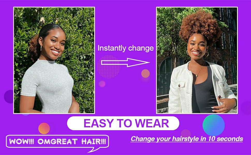 Extensions de cheveux afro Puff avec cordon de serrage - Queue de cheval afro - Cheveux synthétiques courts et bouclés