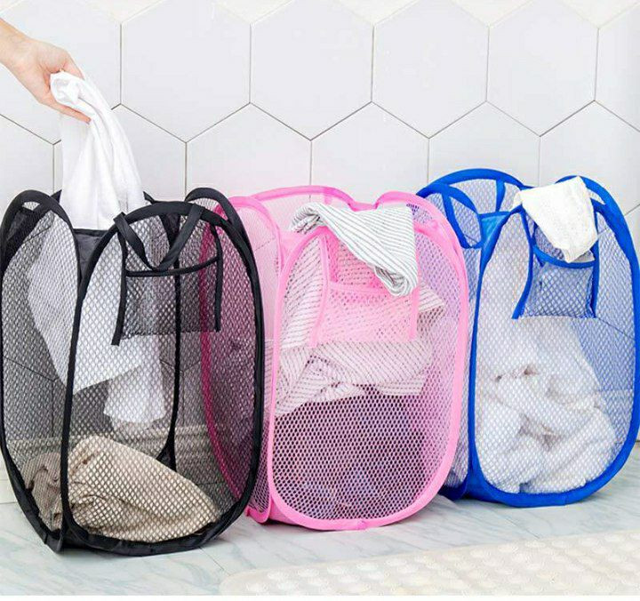 Panier à vêtements sales respirant en tissu de couleur unie, panier de rangement domestique en maille portable, cadre de rangement pliable pour vêtements