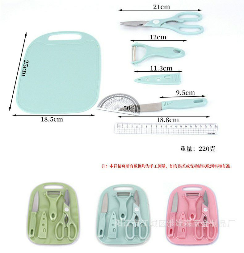 Couteau à fruits et ciseaux de cuisine en acier inoxydable, ensemble de quatre pièces, couteau à éplucher, couteau d'office, ensemble de couteaux de cuisine, planche à découper pour aliments pour bébés
