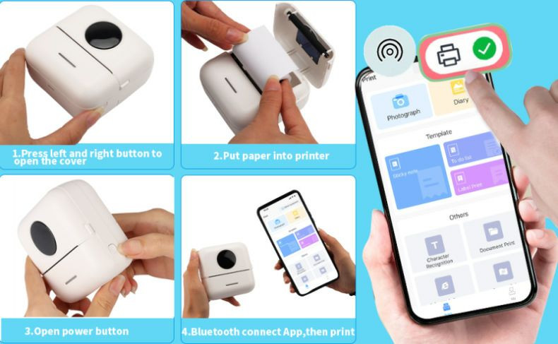 La mini-imprimante thermique de poche. se connecte sans fil au téléphone portable Bluetooth, une petite imprimante photo intelligente sans encre pour la maison