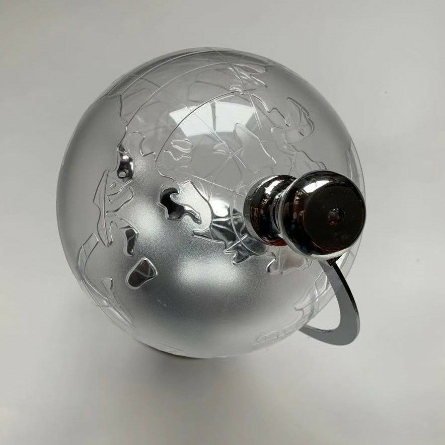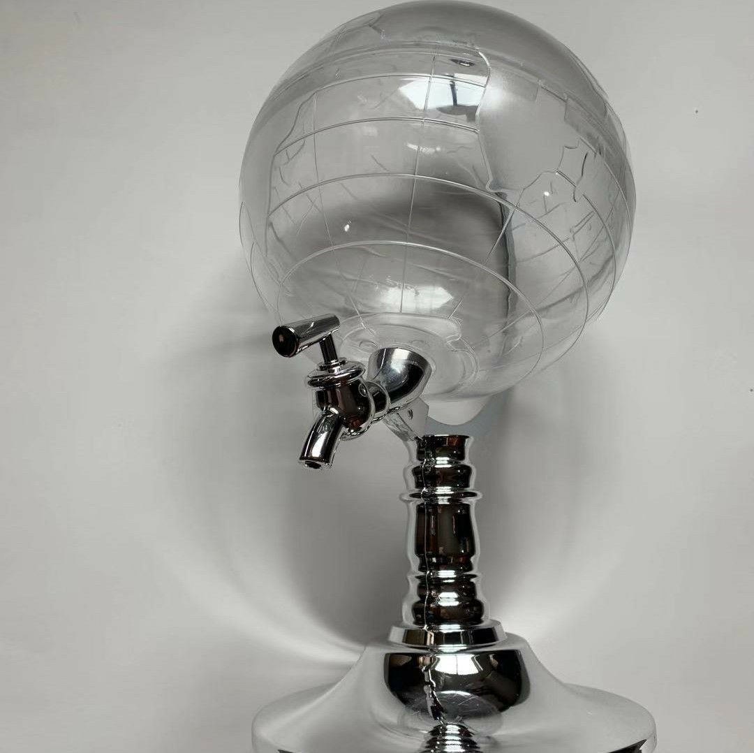 Le design imite un globe terrestre, avec un robinet pour le service.