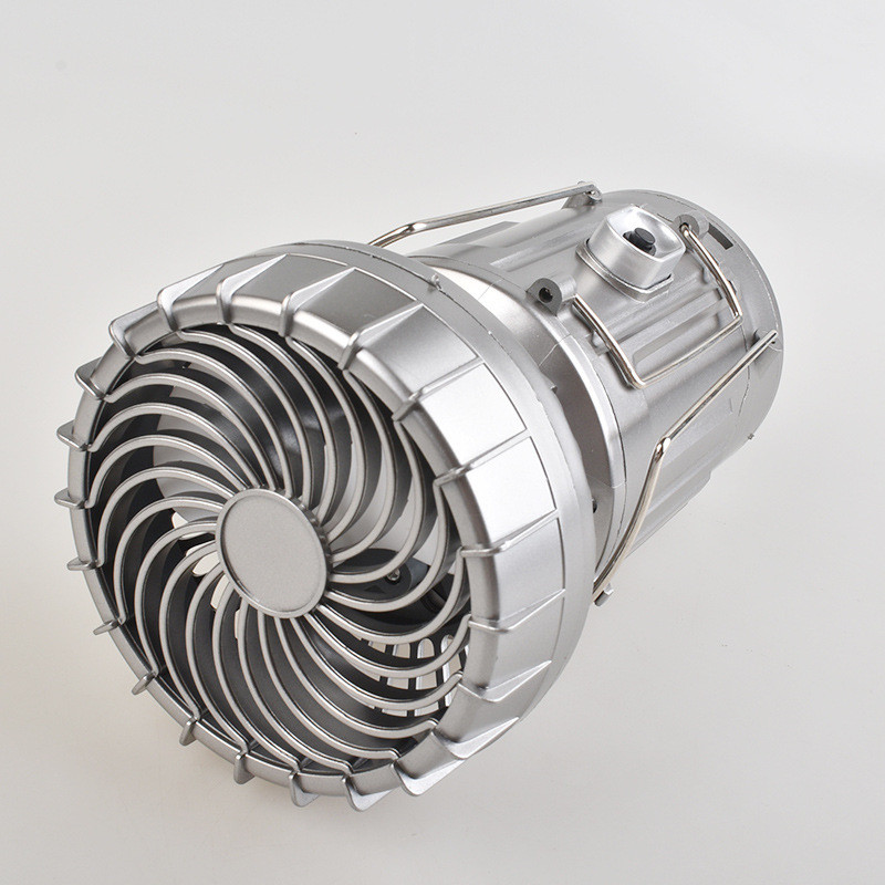 Lampe de camping multifonctionnelle avec ventilateur, éclairage solaire, lampe de chevet, lampe de poche, power bank, chargeur portable pour la batterie.
